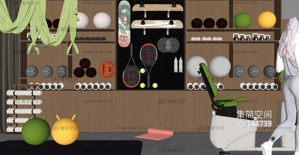 中古风健身房SU模型 su草图模型下载 [模型ID:144739]