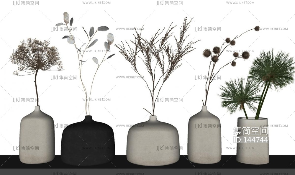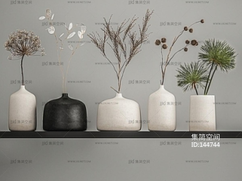 侘寂禅意花艺花瓶摆件SU模型 su草图模型下载 [模型ID:144744]