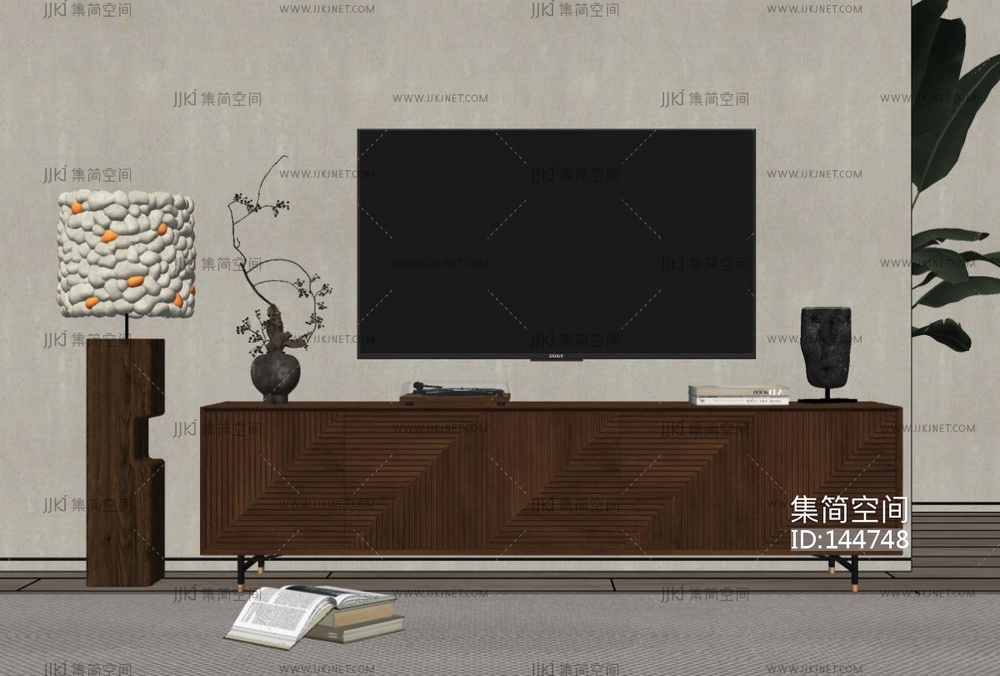 侘寂中古电视柜SU模型 su草图模型下载 [模型ID:144748]
