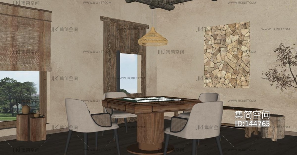 侘寂棋牌室SU模型 su草图模型下载 [模型ID:144765]