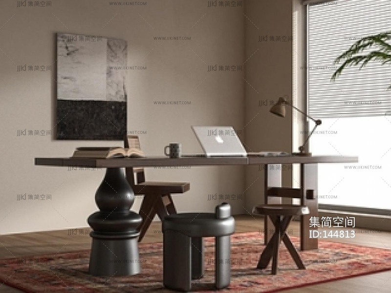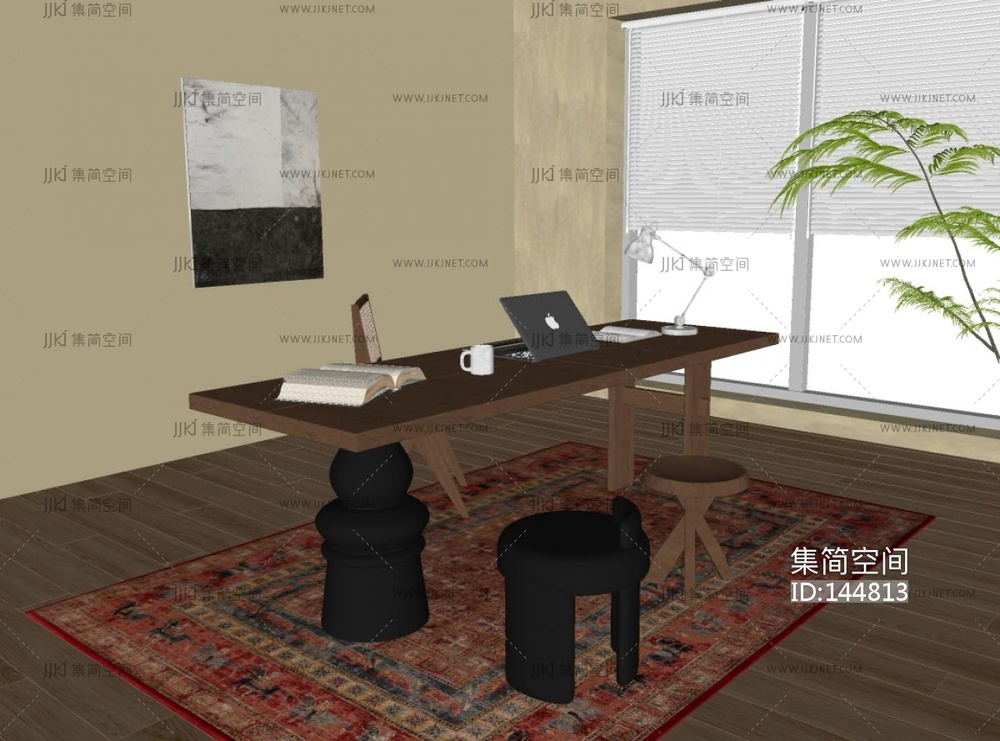 侘寂书桌椅SU模型 su草图模型下载 [模型ID:144813]