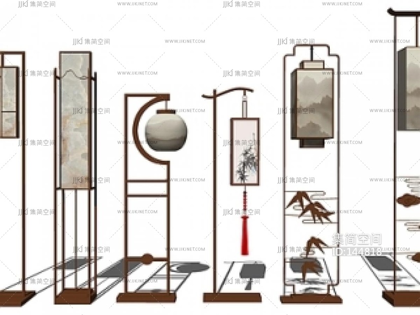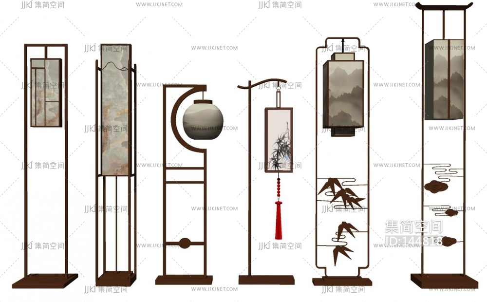 中式新中式落地灯组合SU模型 su草图模型下载 [模型ID:144818]