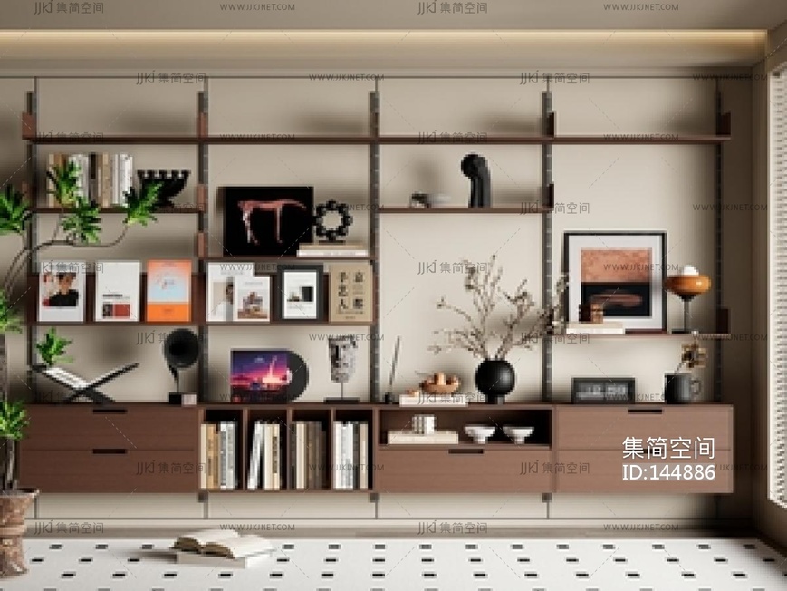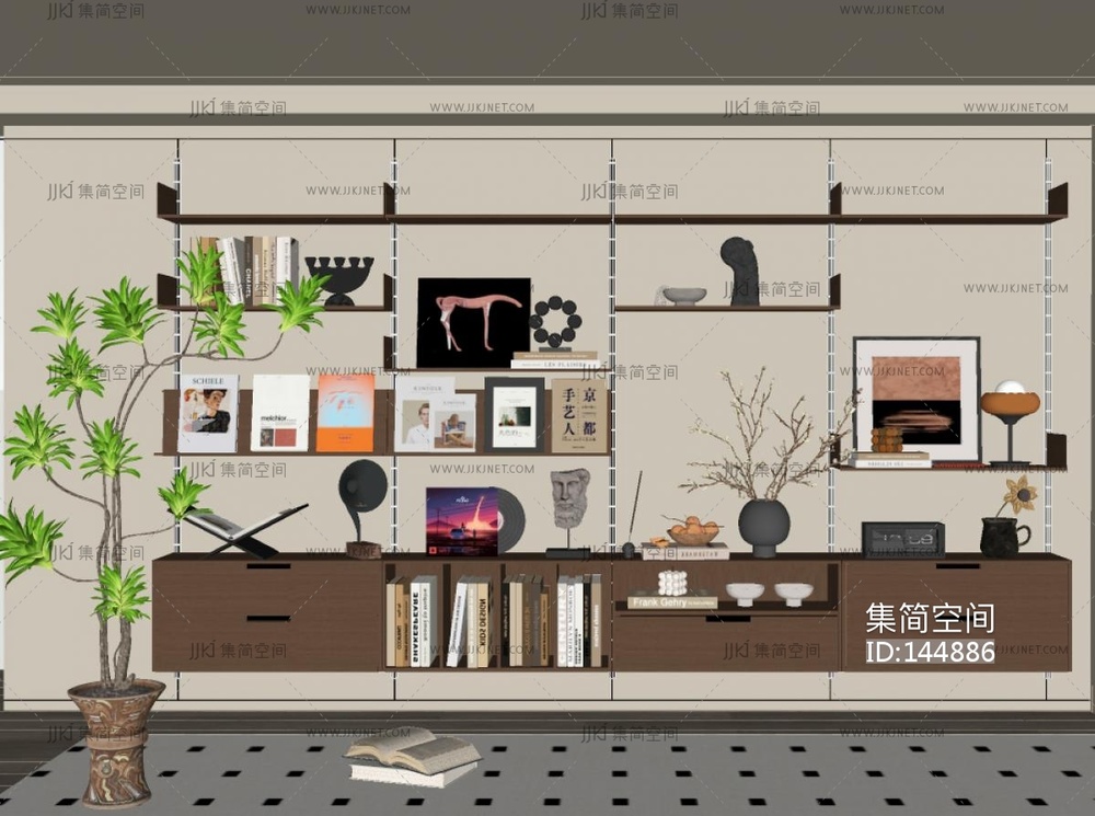 现代中古书架SU模型 su草图模型下载 [模型ID:144886]