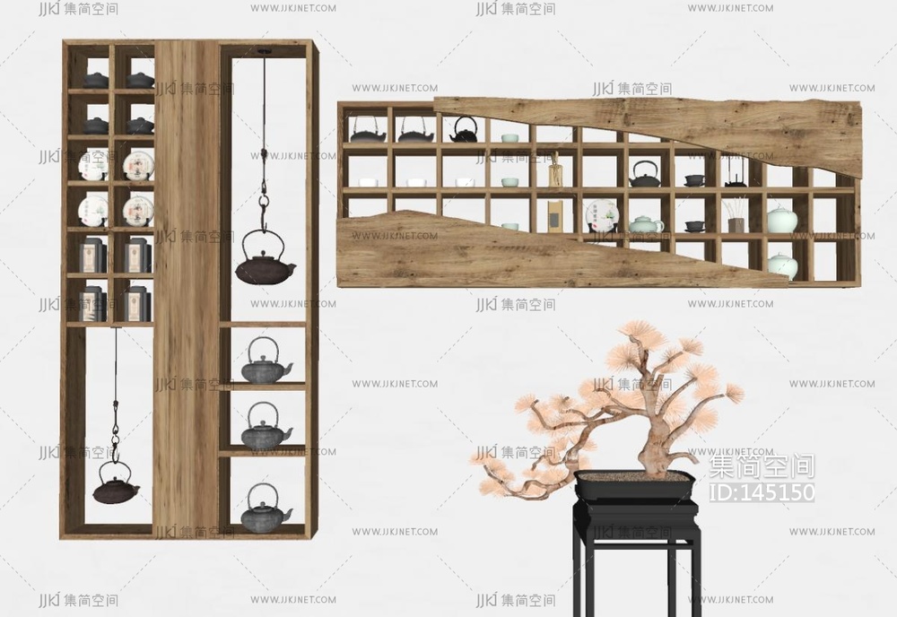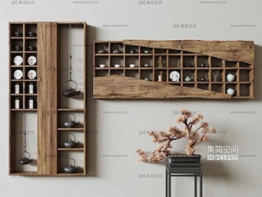 侘寂挂壁式茶柜,装饰柜SU模型 su草图模型下载 [模型ID:145150]
