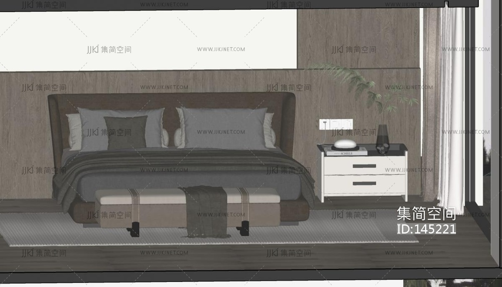 现代床尾凳, su草图模型下载 [模型ID:145221]
