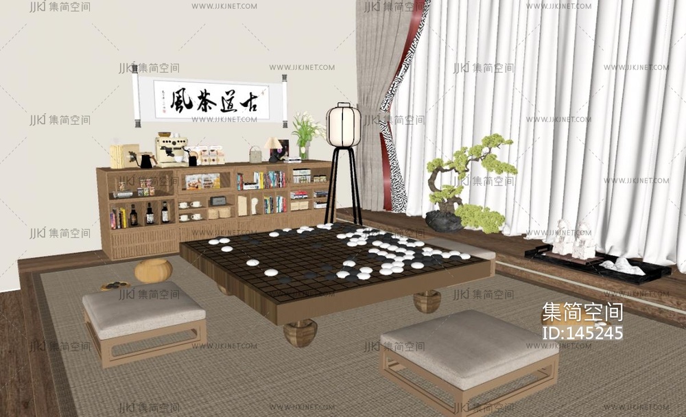 日式原木棋牌室SU模型 su草图模型下载 [模型ID:145245]