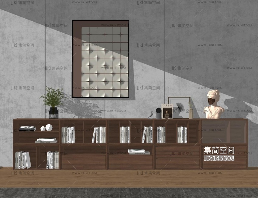 现代组合柜书柜SU模型 su草图模型下载 [模型ID:145308]