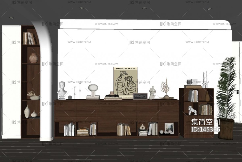 现代书柜,矮柜SU模型 su草图模型下载 [模型ID:145366]