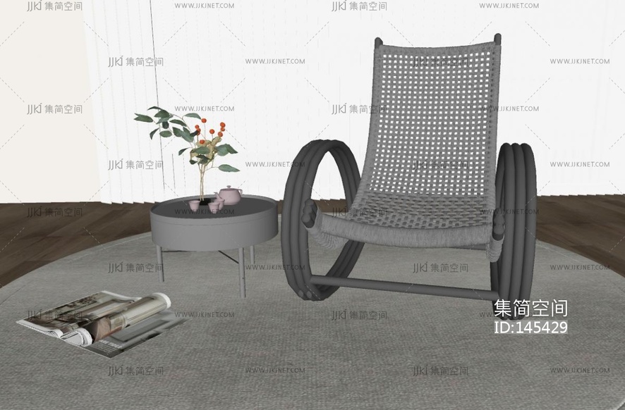 新中式摇椅SU模型 su草图模型下载 [模型ID:145429]
