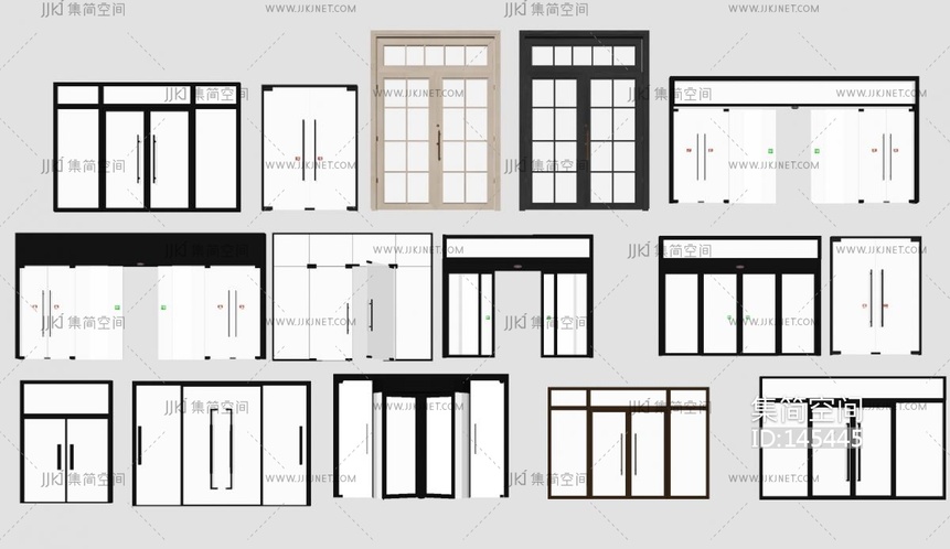 现代玻璃双开门_玻璃单开门_办公玻璃门_玻璃隔断SU模型su草图模型下载