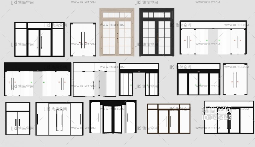 现代铝合金玻璃门,旋转门组合SU模型 su草图模型下载 [模型ID:145445]