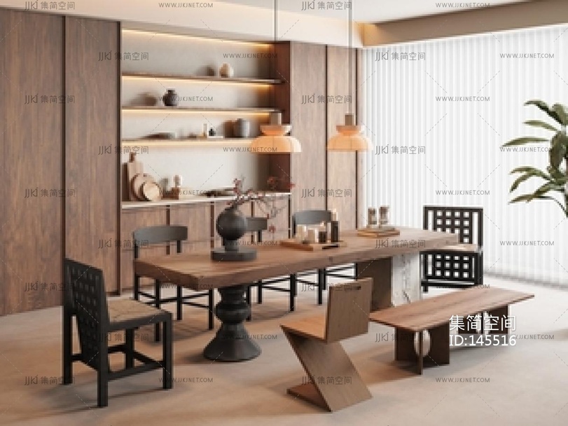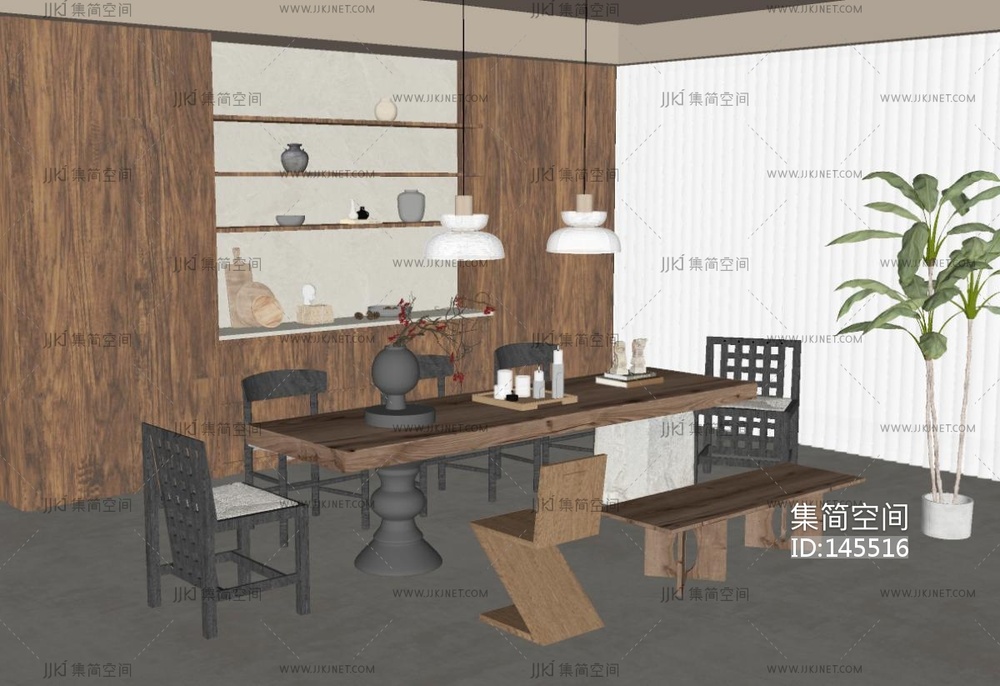 侘寂中古家居餐厅SU模型 su草图模型下载 [模型ID:145516]