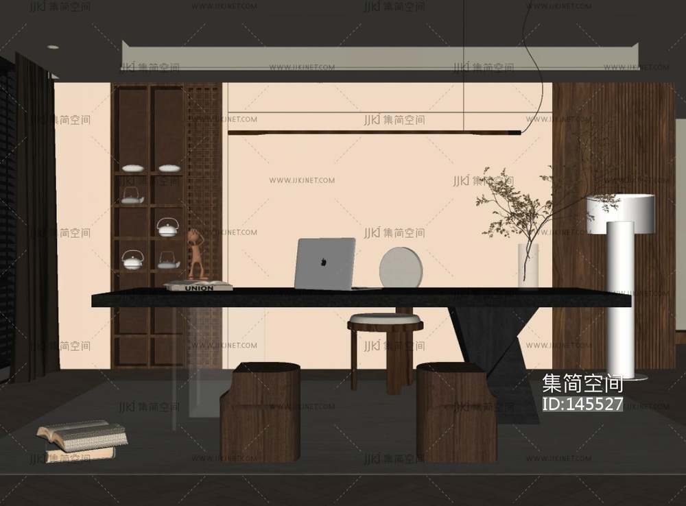 侘寂中古书房SU模型 su草图模型下载 [模型ID:145527]
