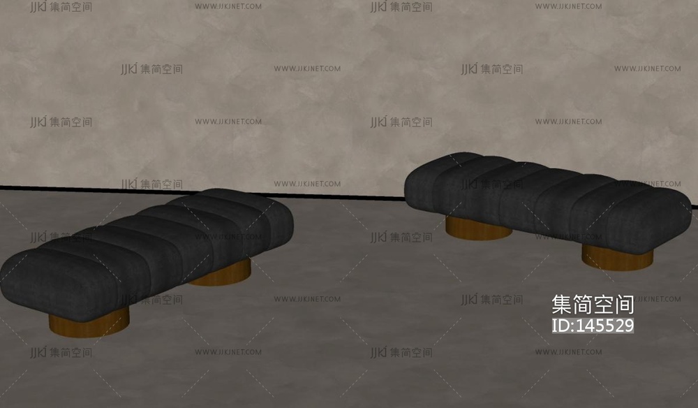 侘寂中古床尾凳SU模型 su草图模型下载 [模型ID:145529]