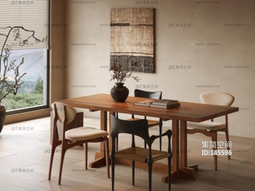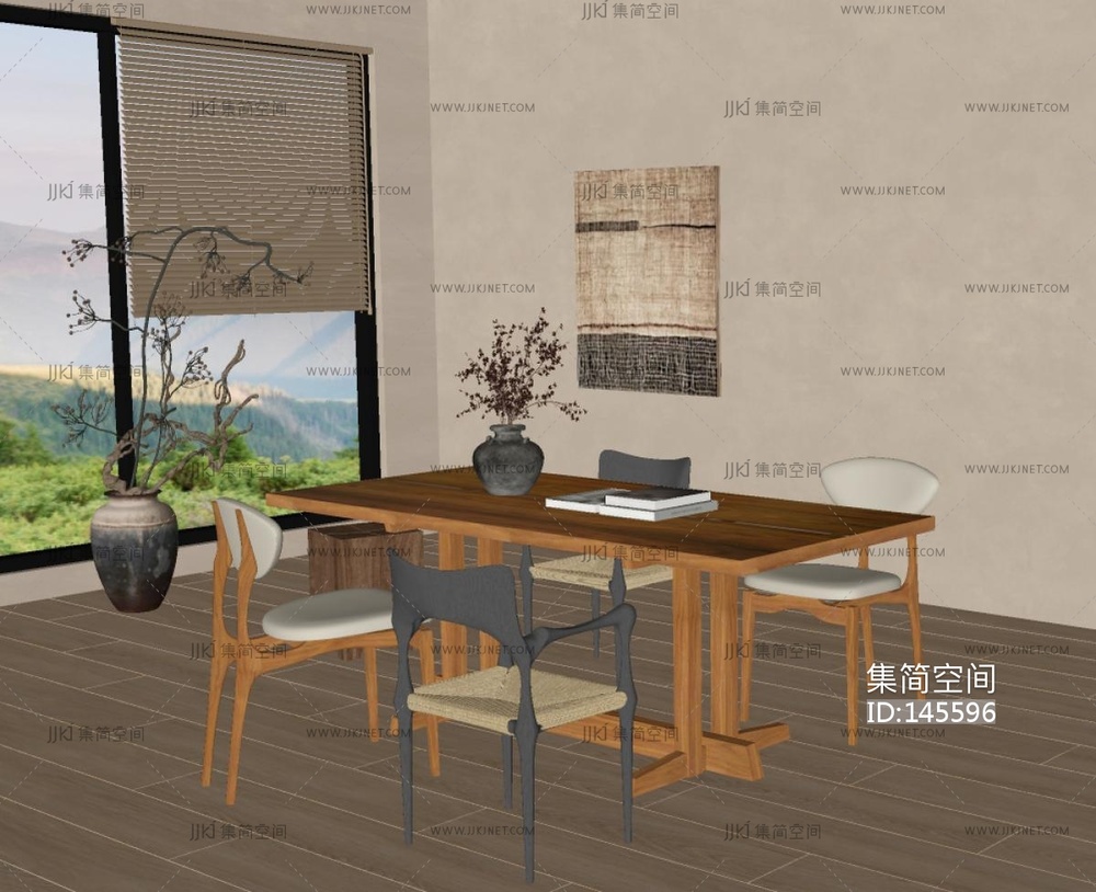 中古风餐桌椅组合SU模型 su草图模型下载 [模型ID:145596]