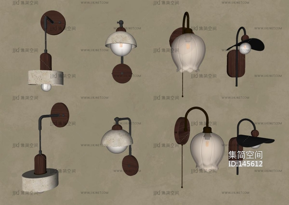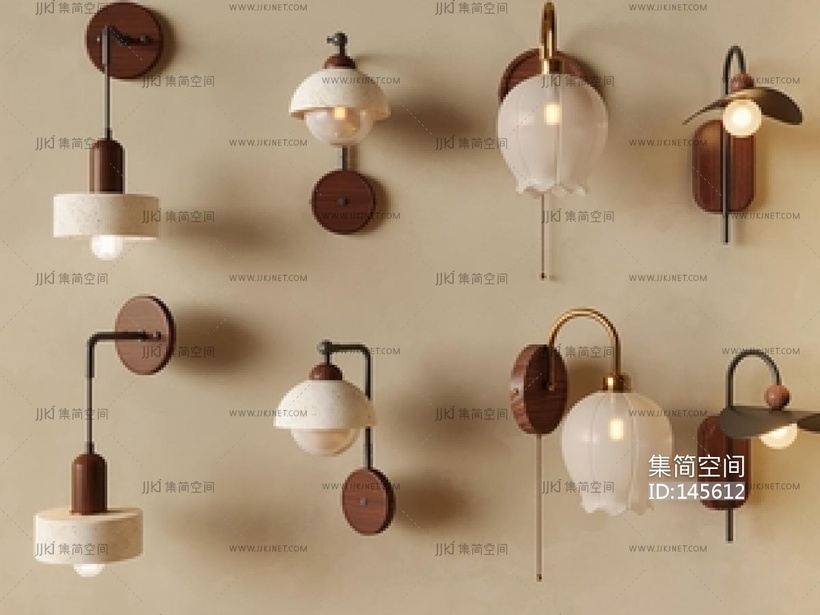 奶油侘寂壁灯组合SU模型 su草图模型下载 [模型ID:145612]