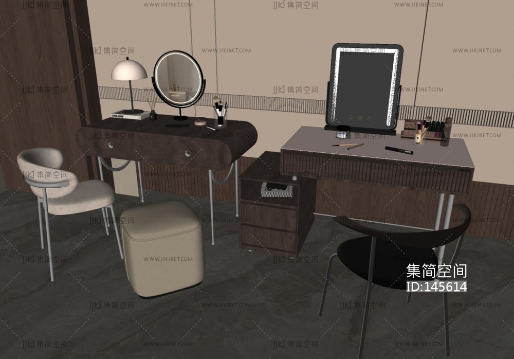 现代中古梳妆台SU模型 su草图模型下载 [模型ID:145614]