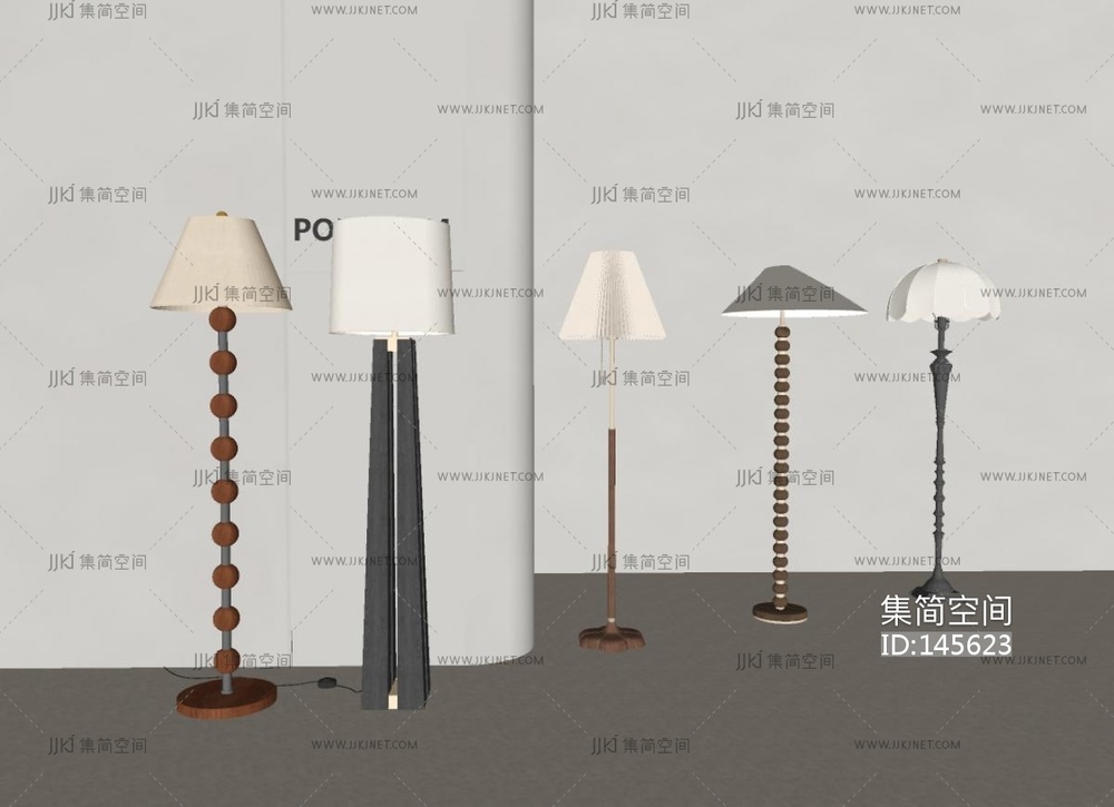 新中式法式落地灯组合SU模型 su草图模型下载 [模型ID:145623]