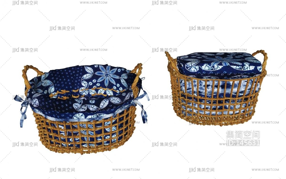 新中式摆件,藤编收纳筐SU模型 su草图模型下载 [模型ID:145631]