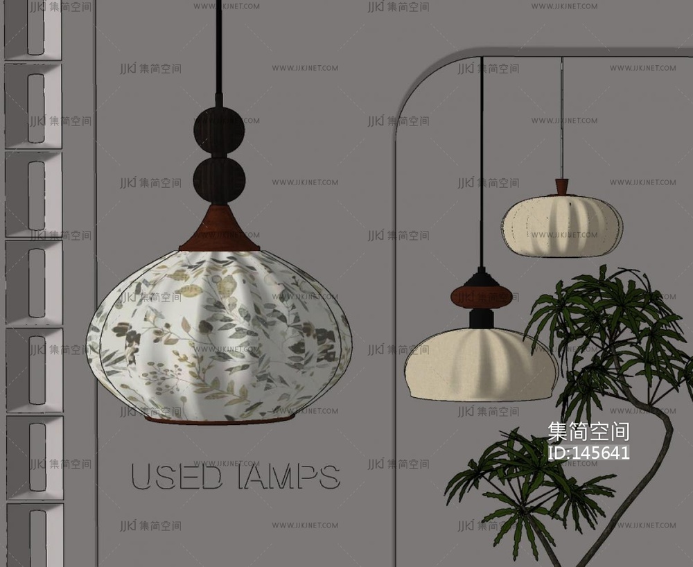 现代新中式吊灯SU模型 su草图模型下载 [模型ID:145641]