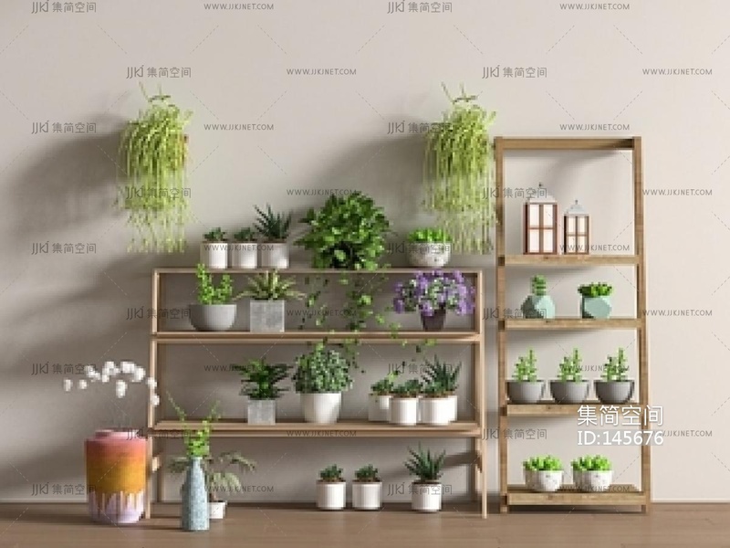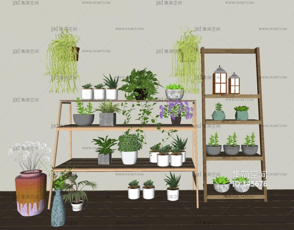 原木北欧花架SU模型 su草图模型下载 [模型ID:145676]