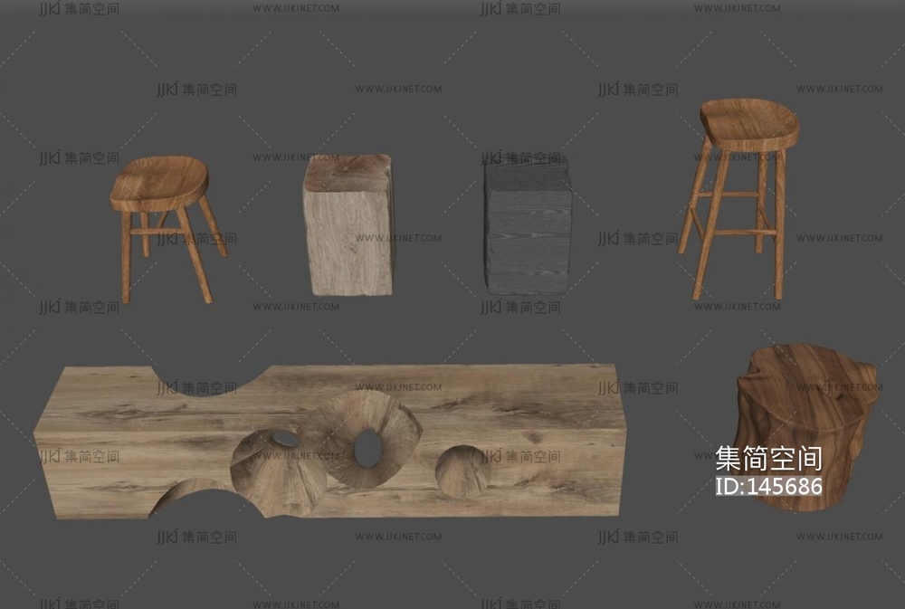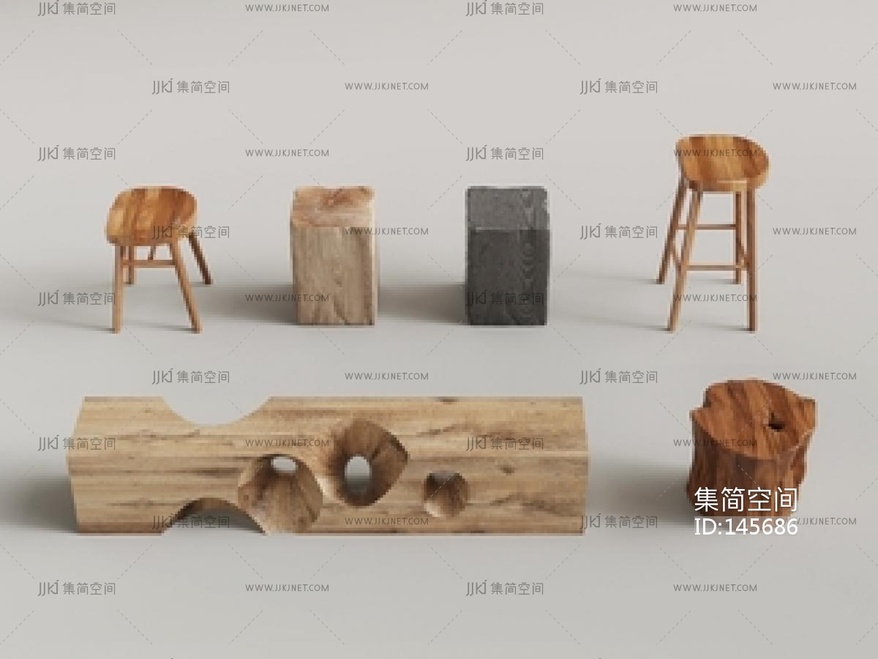 侘寂凳子组合SU模型 su草图模型下载 [模型ID:145686]