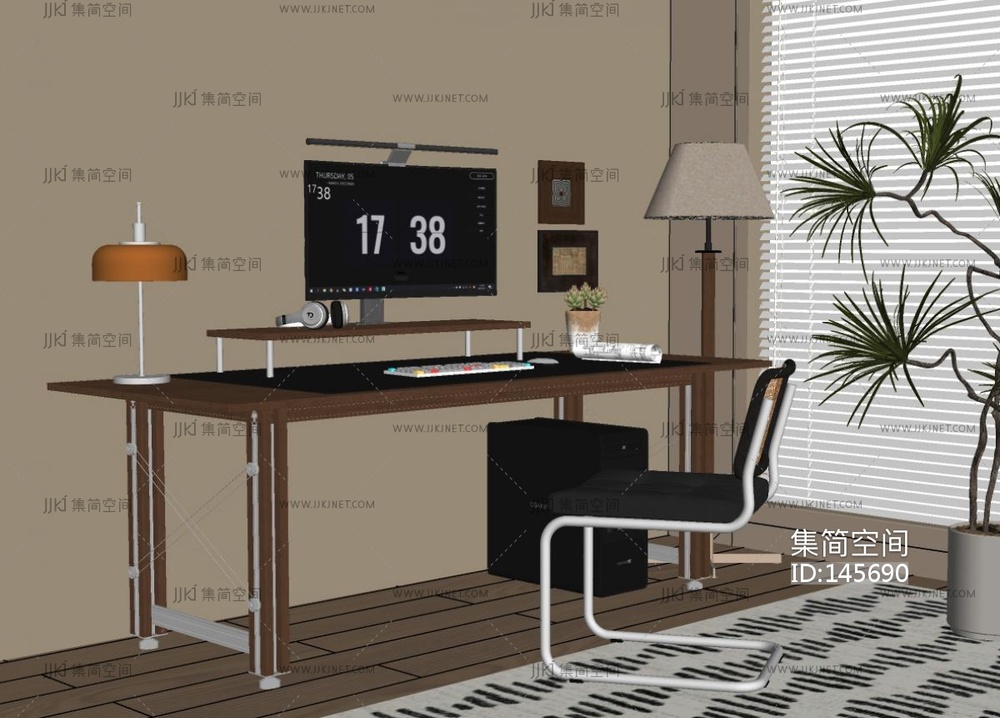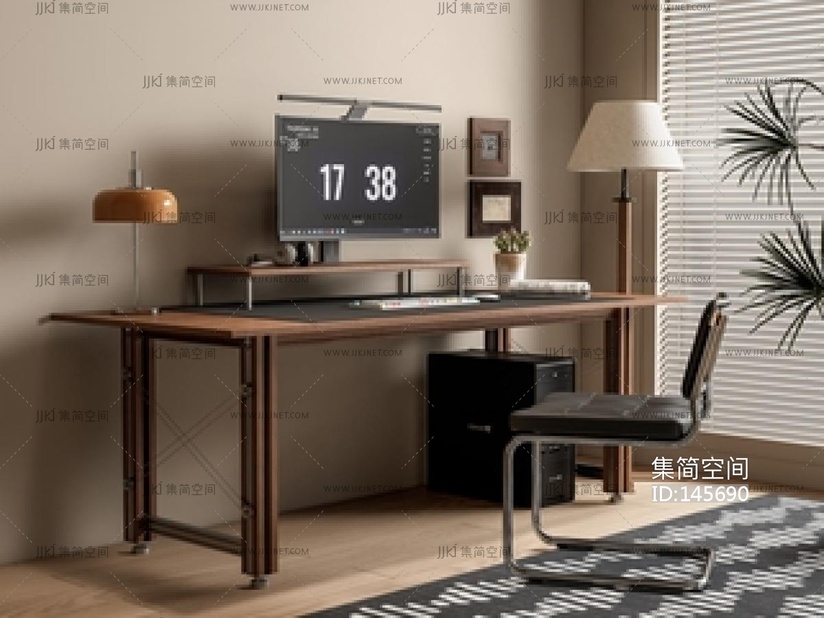 现代中古风书桌椅组合SU模型 su草图模型下载 [模型ID:145690]