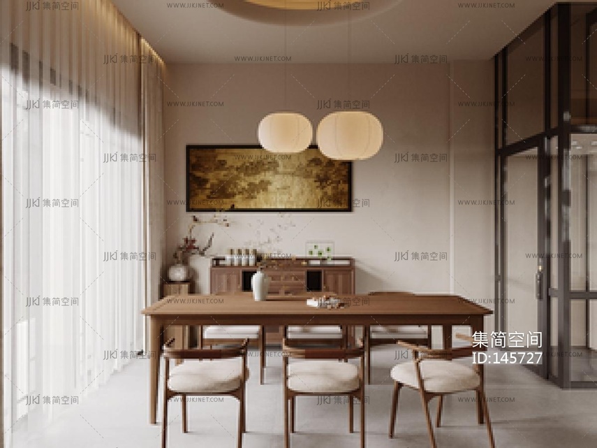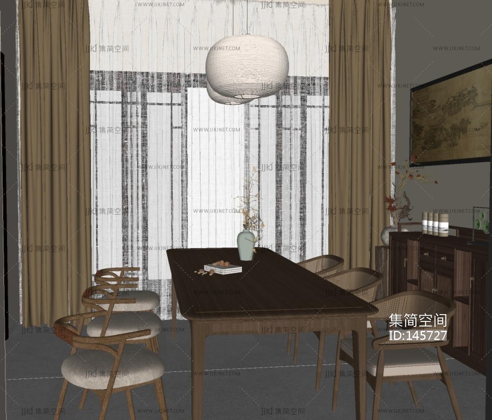 新中式禅意家居餐厅SU模型 su草图模型下载 [模型ID:145727]
