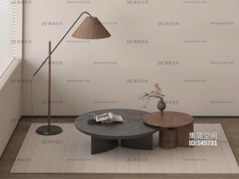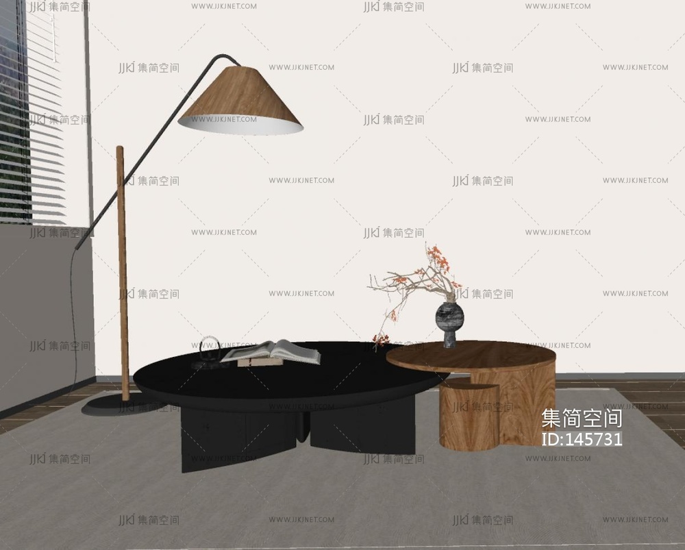 新中式茶几落地灯组合SU模型 su草图模型下载 [模型ID:145731]