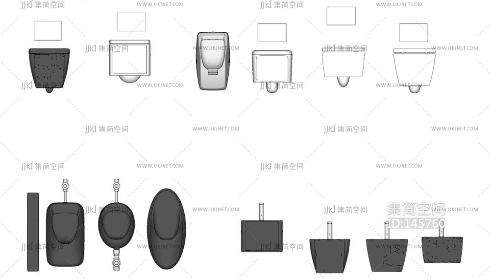 现代蹲便器_小便斗 su草图模型下载 [模型ID:145760]