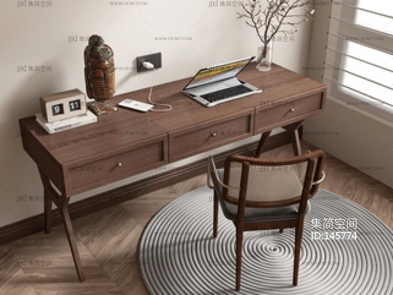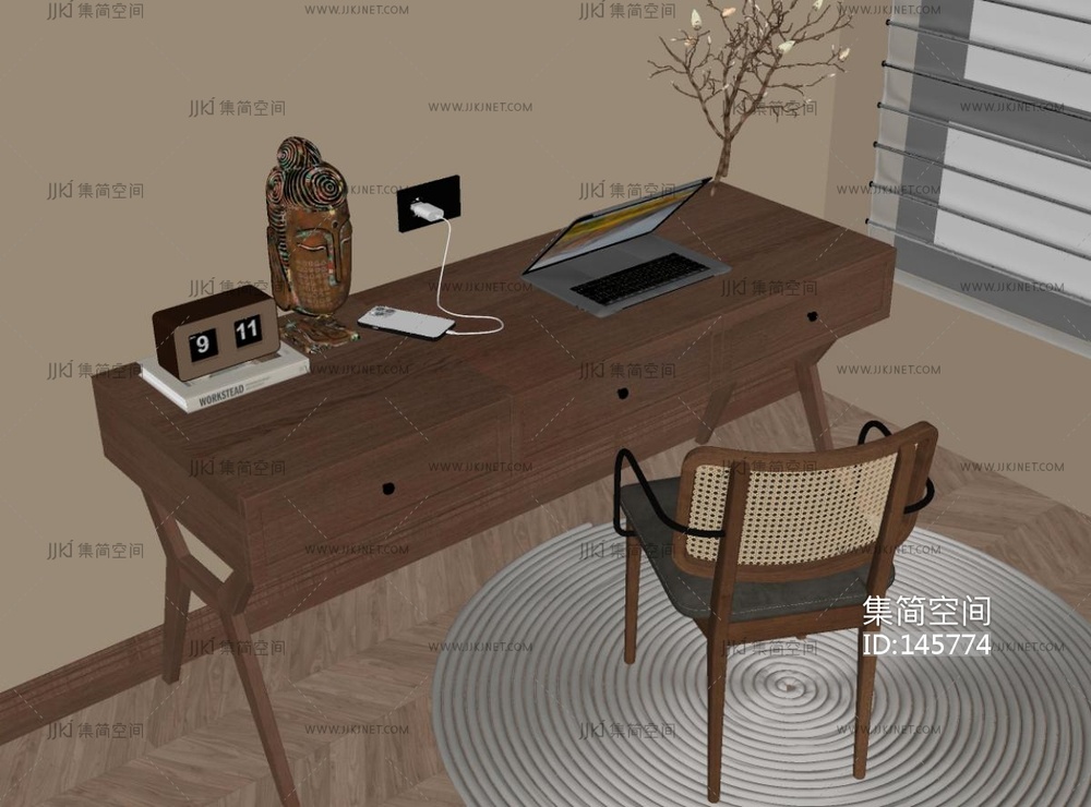 侘寂中古书桌椅组合SU模型 su草图模型下载 [模型ID:145774]