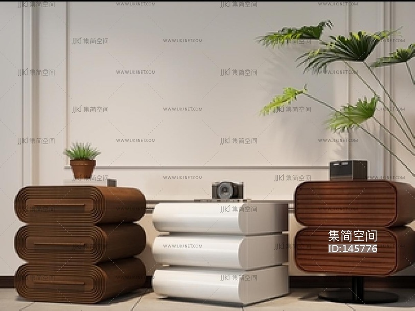 现代床头柜组合_现代奶油风床头柜SU模型su草图模型下载