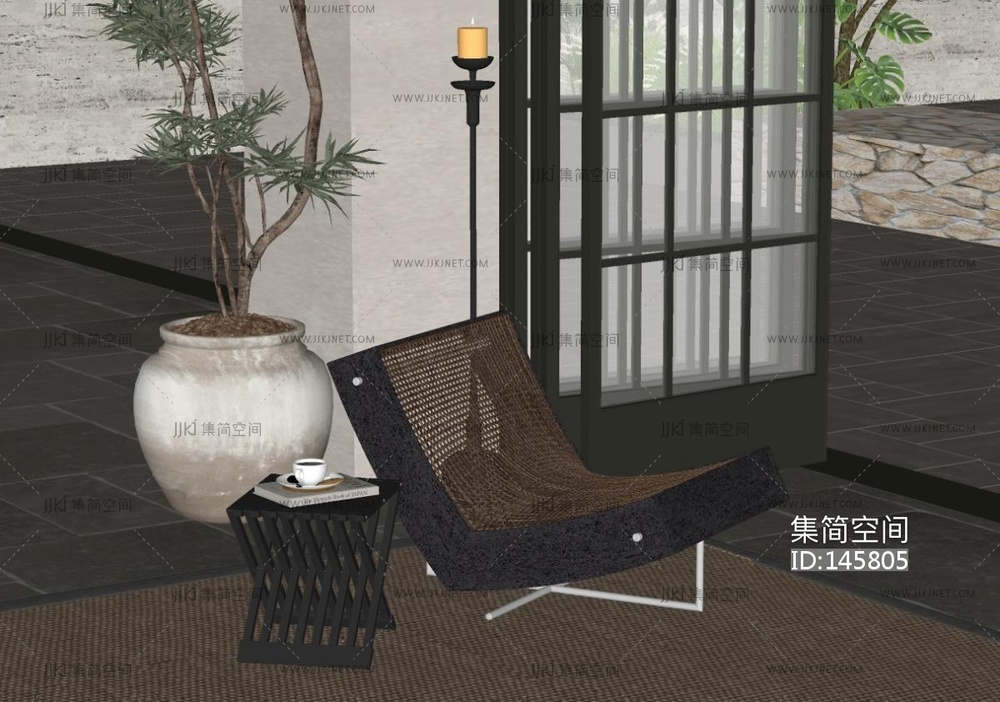 摇椅,躺椅,休闲椅,落地灯,小边几SU模型su草图模型下载