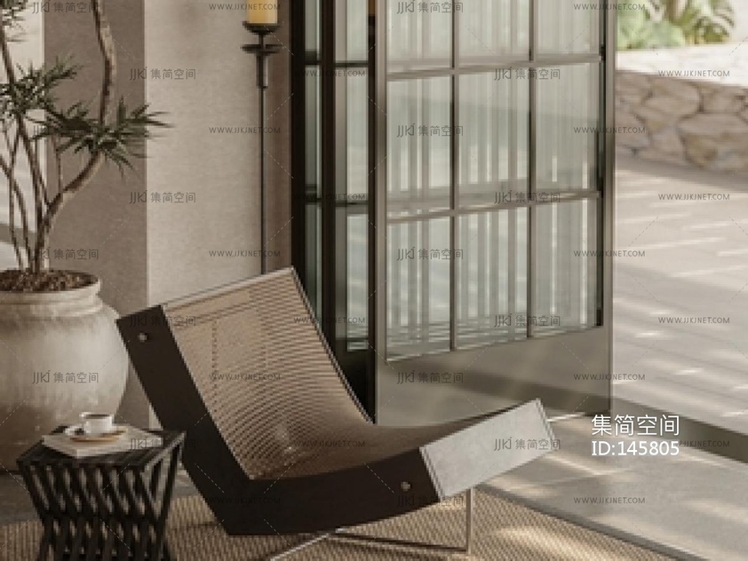 中古躺椅_中古风躺椅_边几SU模型su草图模型下载