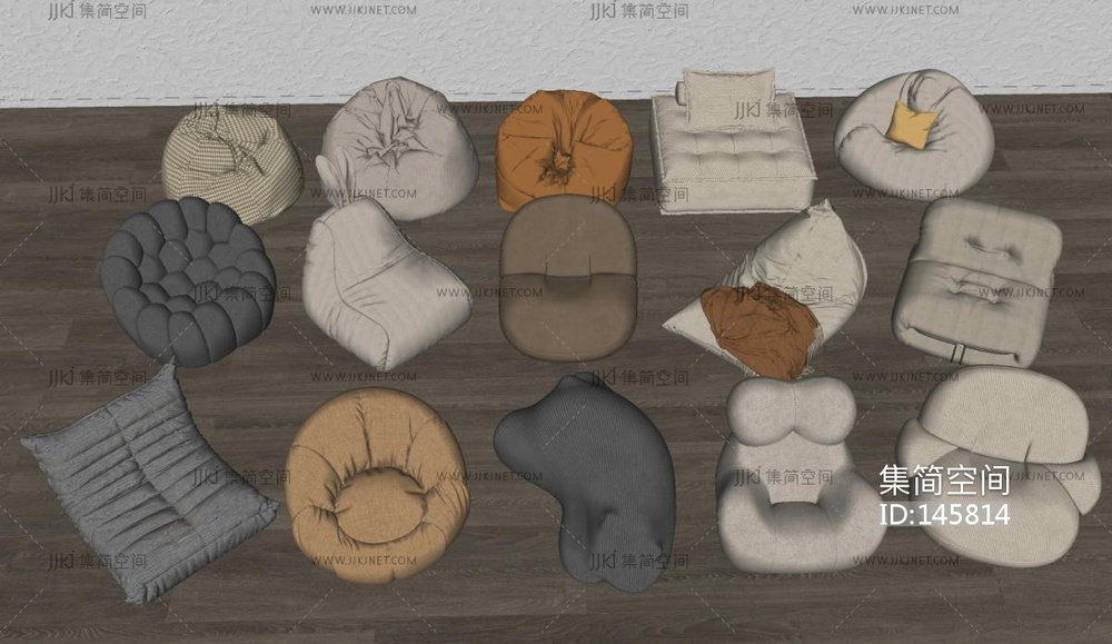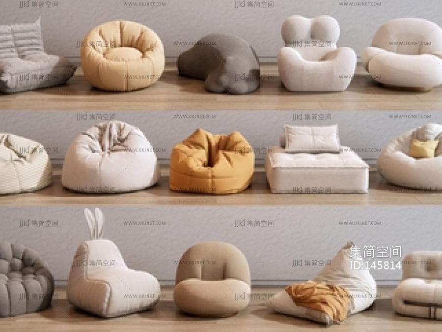 05现代懒人沙发_米灰色懒人沙发su模型su草图模型下载