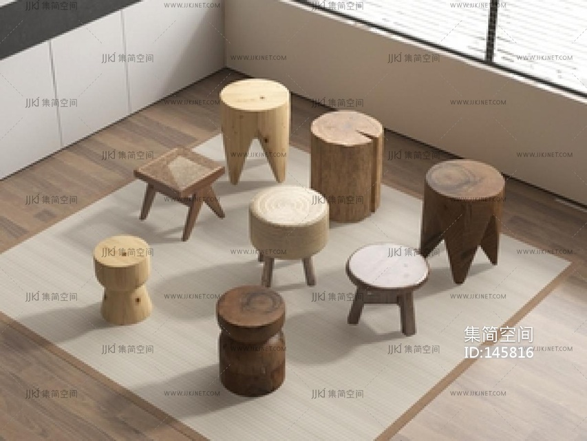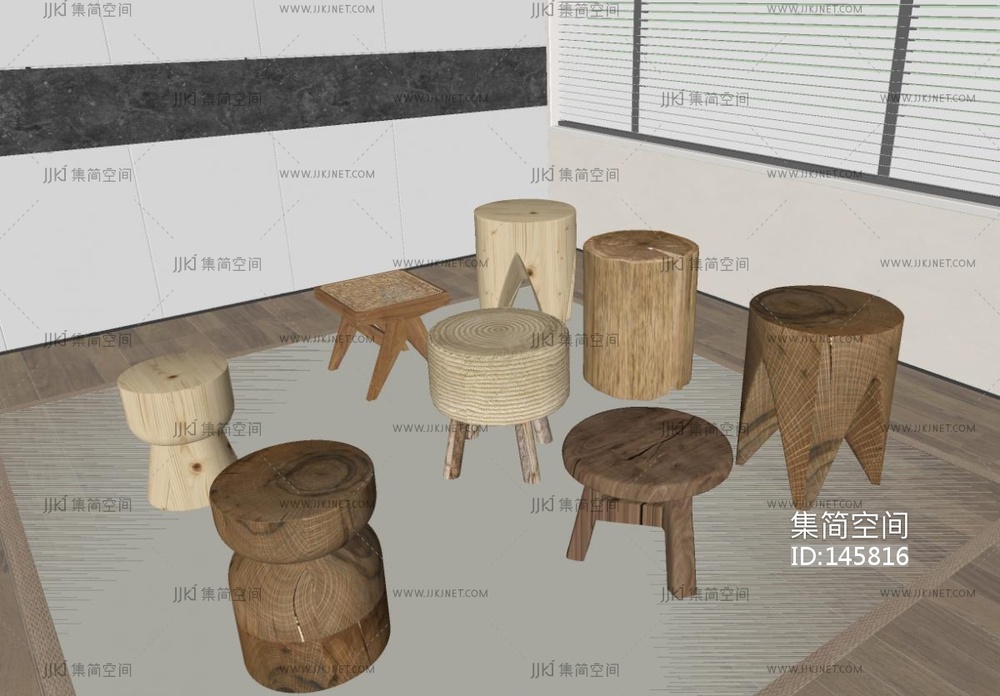 侘寂凳子组合SU模型 su草图模型下载 [模型ID:145816]