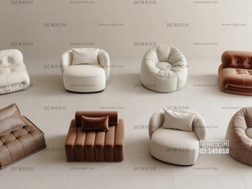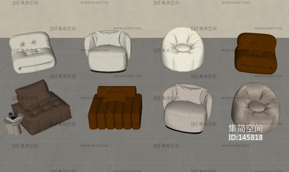 05现代懒人沙发_米灰色懒人沙发su模型su草图模型下载