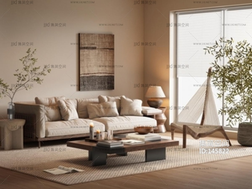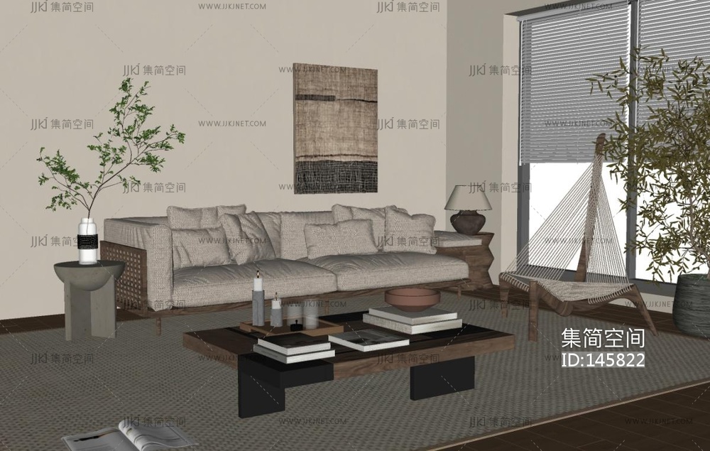 侘寂中古家居客厅SU模型 su草图模型下载 [模型ID:145822]