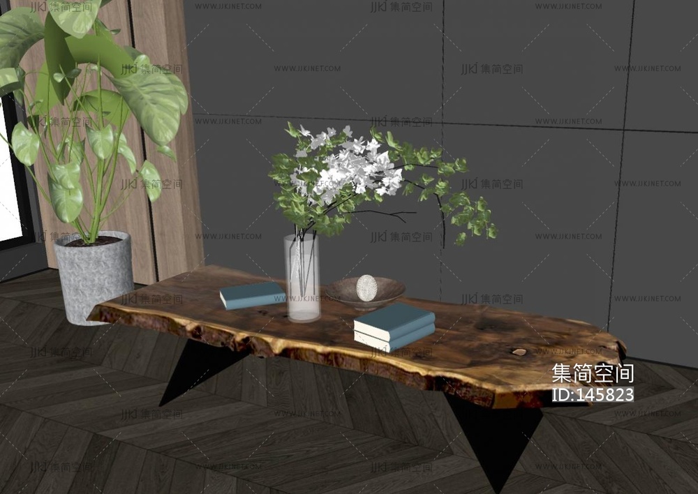 中古侘寂茶几_侘寂中古风茶几SU模型su草图模型下载