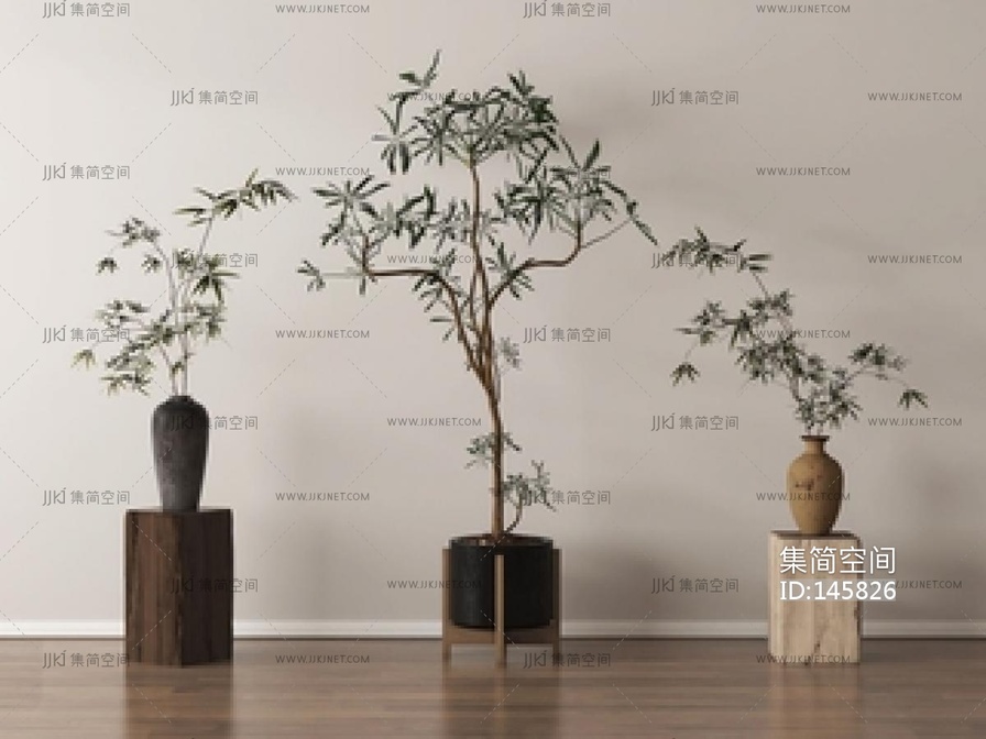 中古侘寂花艺SU模型su草图模型下载
