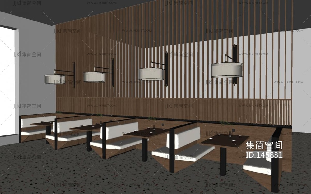 现代餐厅卡座SU模型 su草图模型下载 [模型ID:145831]