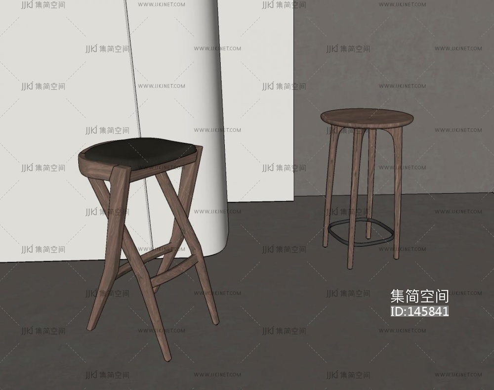 中古侘寂吧凳SU模型 su草图模型下载 [模型ID:145841]