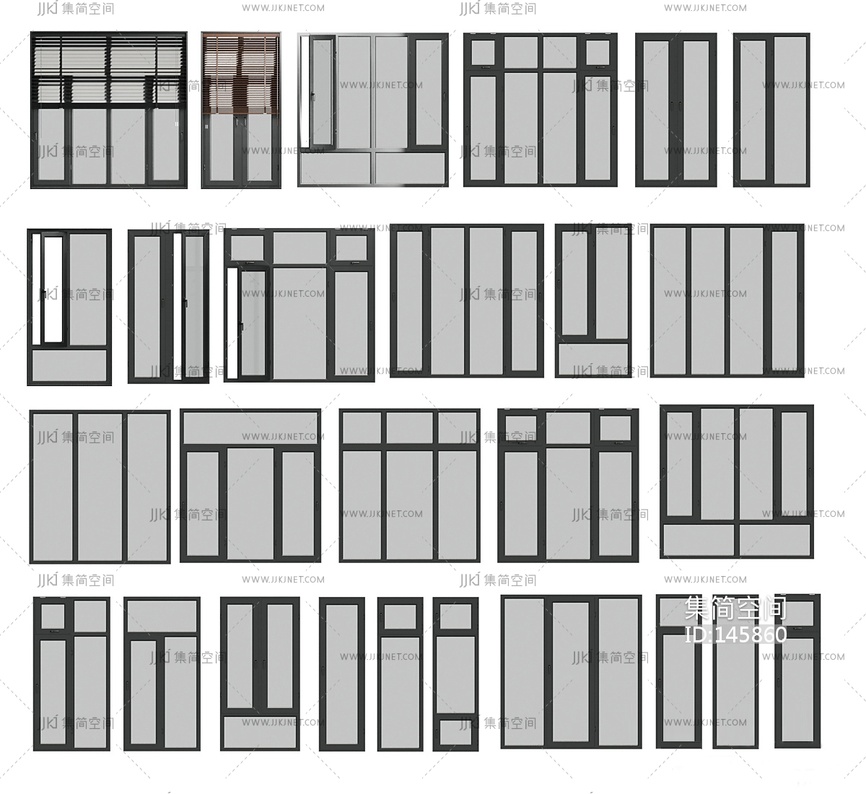 现代窗户组合,折叠窗,,推拉窗,SU模型su草图模型下载