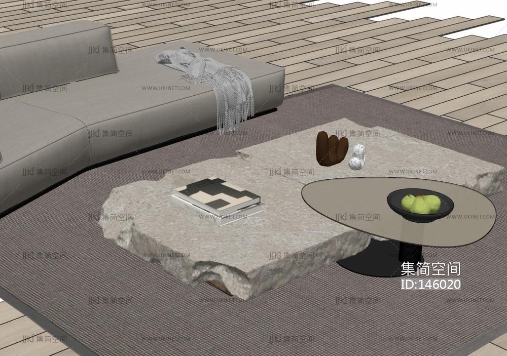 侘寂现代茶几件SU模型 su草图模型下载 [模型ID:146020]