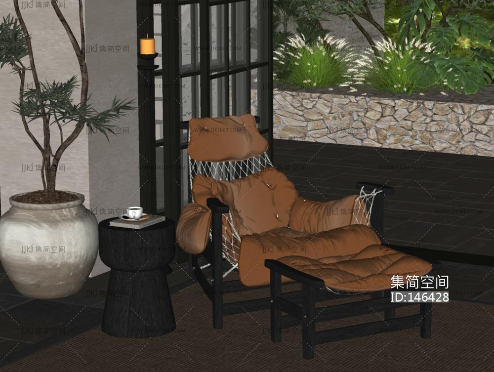 摇椅,躺椅,休闲椅,落地灯,小边几SU模型su草图模型下载