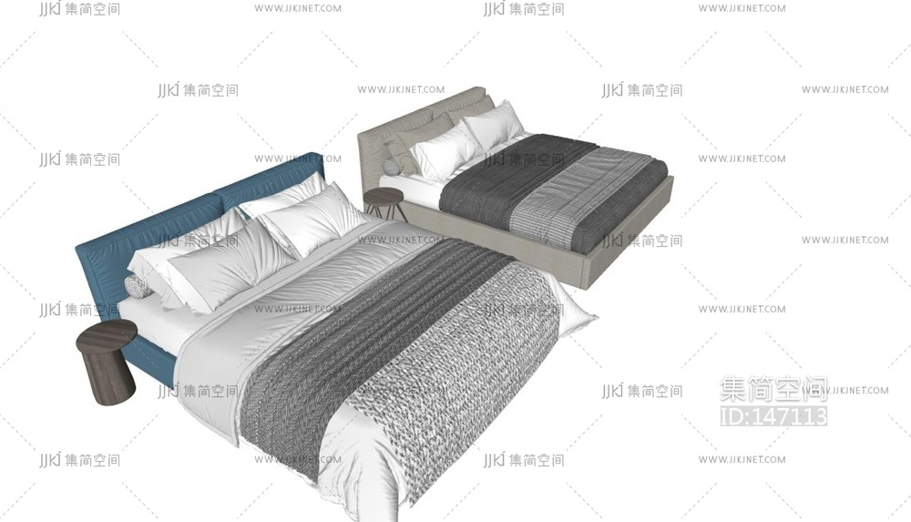 欧式双人床床头柜台灯组合SU模型su草图模型下载