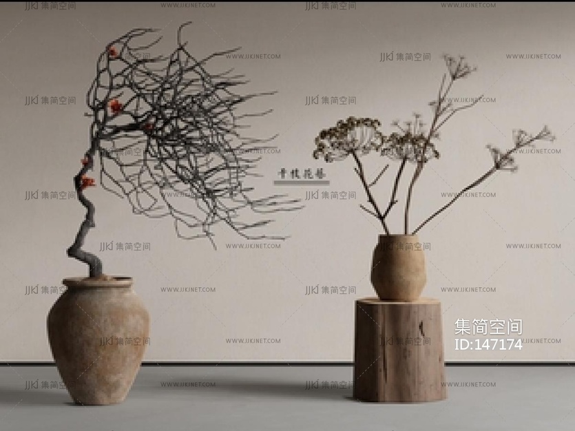 侘寂花艺,干枝花艺SU模型 su草图模型下载