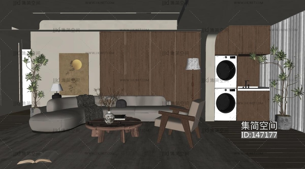 侘寂中古家居客厅SU模型 su草图模型下载 [模型ID:147177]