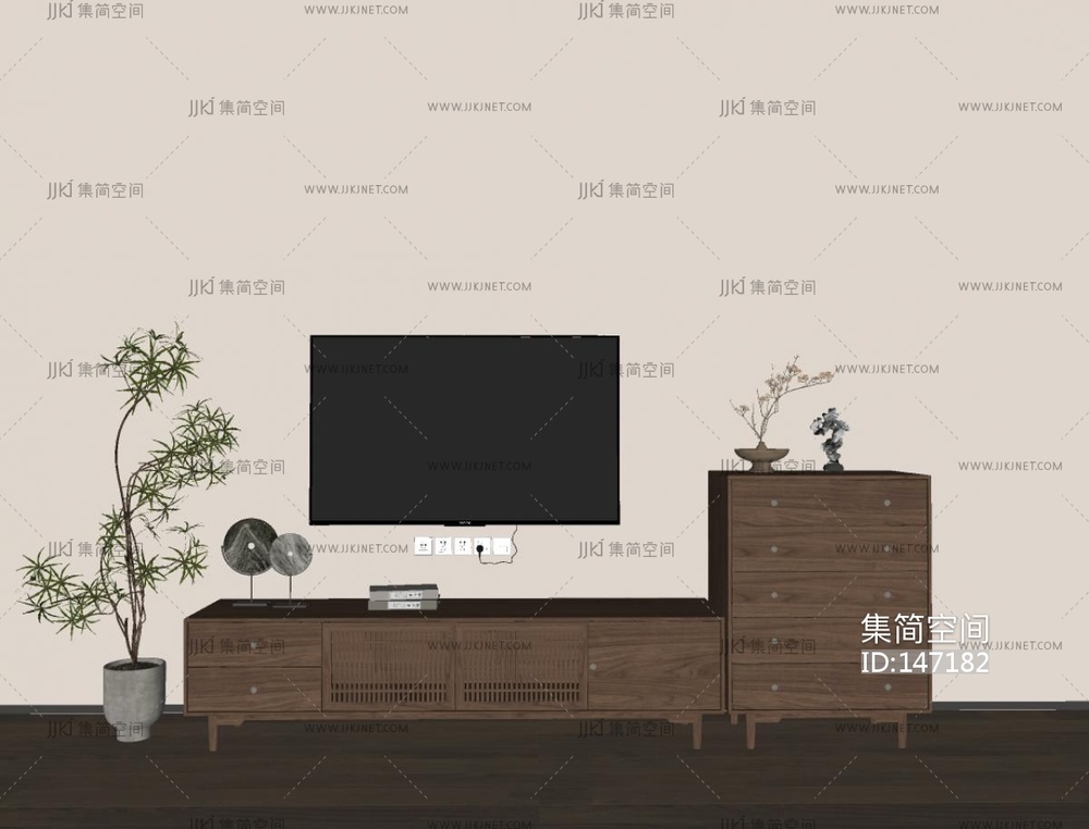新中式电视柜SU模型 su草图模型下载 [模型ID:147182]