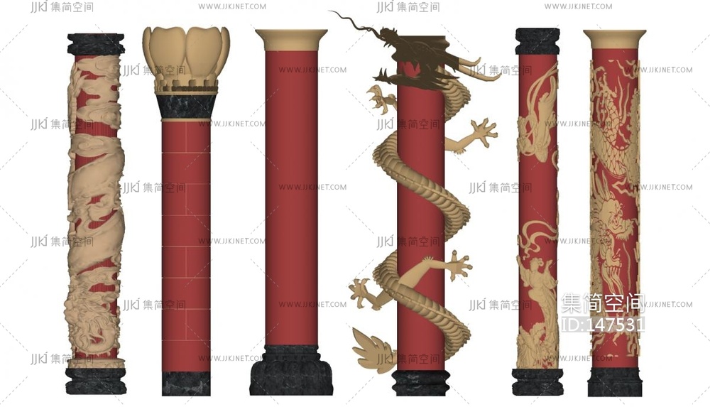 -中式雕刻柱子盘龙柱子 su草图模型下载 [模型ID:147531]